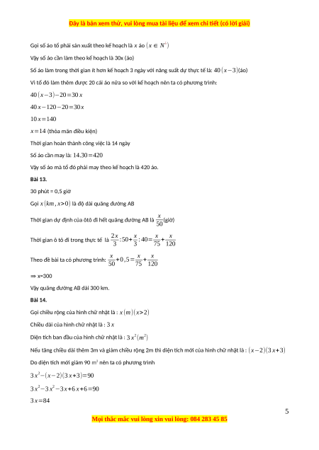 - Giải bài toán bằng cách lập phương trình bậc nhất.