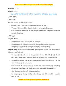 BÀI 2. CÁC TRƯỜNG HỢP ĐỒNG DẠNG CỦA HAI TAM GIÁC (3 tiết) I. MỤC TIÊU: