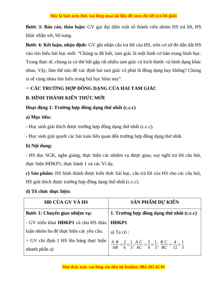 - Học sinh giải quyết các bài toán liên quan đến trường hợp đồng dạng thứ nhất. b) Nội dung: