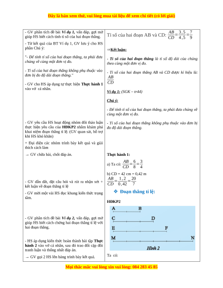 - HS hiểu được khái niệm tỉ số của hai đoạn thẳng và thực hành [nh tỉ số của hai đoạn thẳng để rèn
