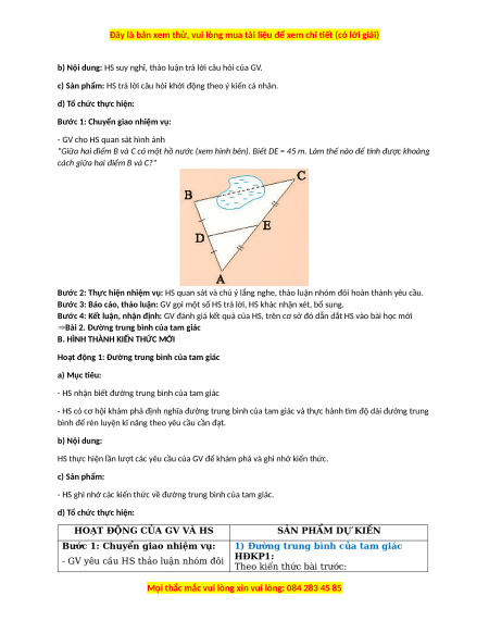 Hoạt động 1: Đường trung bình của tam giác a) Mục tiêu: