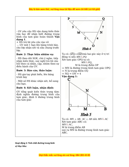 - HS có cơ hội khám phá định nghĩa đường trung bình của tam giác và thực hành tìm độ dài đường trung