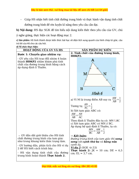 tam giác thì song song với cạnh thứ ba và bằng nửa cạnh đó).