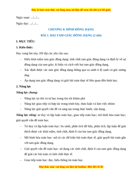 BÀI 1. HAI TAM GIÁC ĐỒNG DẠNG (2 tiết) I. MỤC TIÊU: