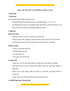BÀI 4: HỆ SỐ GÓC CỦA ĐƯỜNG THẲNG (3 tiết) I. MỤC TIÊU: 1. Kiến thức: