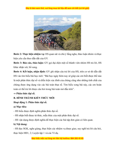 A. HOẠT ĐỘNG KHỞI ĐỘNG (MỞ ĐẦU) a) Mục tiêu: