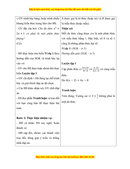 - Mô hình hóa toán học: Chỉ ra được tử thức, mẫu thức của một phân thức đã cho;