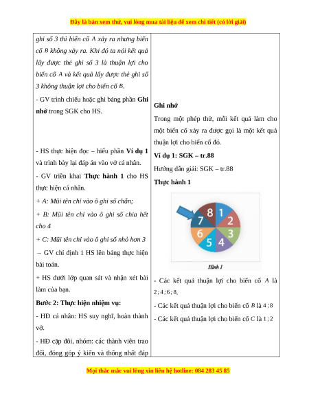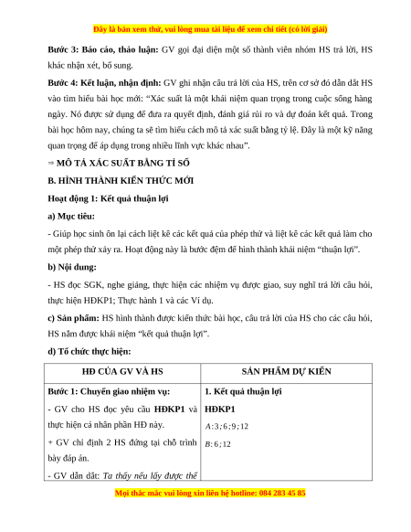 một phép thử xảy ra. Hoạt động này là bước đệm để hình thành khái niệm “thuận lợi”. b) Nội dung:
