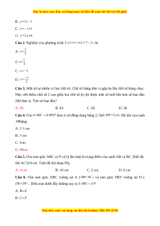 Câu 5. Cho tam giác ABC có P và Q lần lượt là trung điểm của cạnh AB và BC. Biết độ