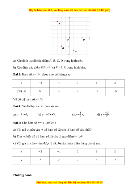 a) Tính f (0 ) , f (−1). b) Hoàn thành bảng sau: x −2 −1 0 1 2 y=f ( x ) ? ? ? ? ?