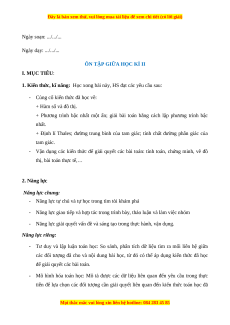 ÔN TẬP GIỮA HỌC KÌ II I. MỤC TIÊU: