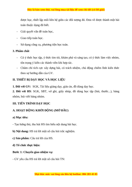 2. Đối với HS: SGK, SBT, vở ghi, giấy nháp, đồ dùng học tập (bút, thước...), bảng