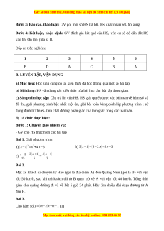+ Phương trình bậc nhất một ẩn; giải bài toán bằng cách lập phương trình bậc nhất.