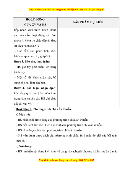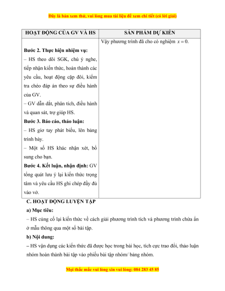 – Giải được phương trình tích và phương trình chứa ẩn ở mẫu cơ bản.