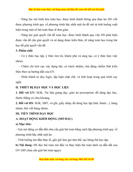 – Vận dụng dạng phương trình quy về phương trình bậc nhất một ẩn để giải các bài toán thực tế. 2. Năng lực Năng lực chung: