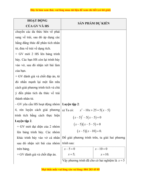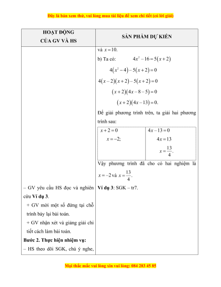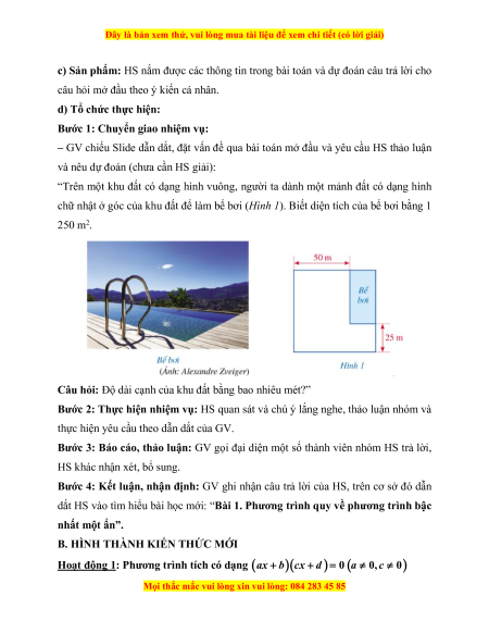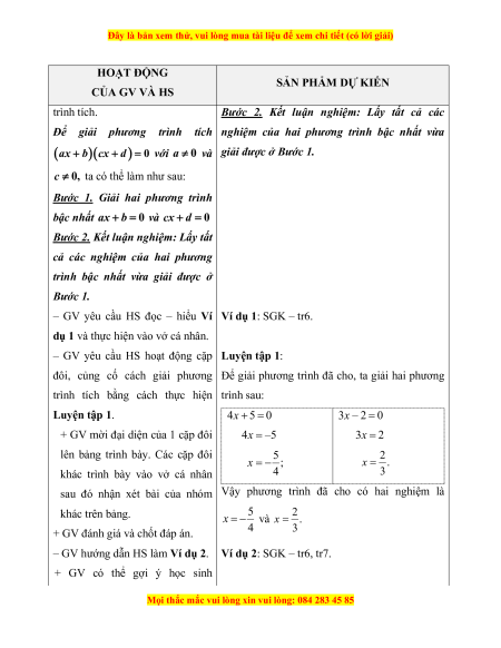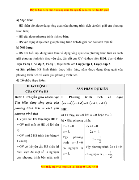 ‒ HS vận dụng được cách giải phương trình tích để giải các bài toán thực tế. b) Nội dung: