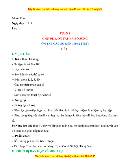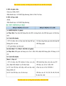 ÔN TẬP CÁC SỐ ĐẾN 100 (2 TIẾT) TIẾT 1 I. MỤC TIÊU