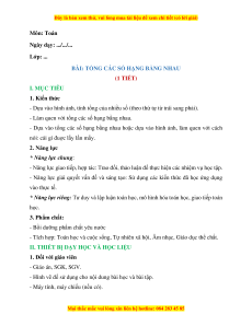 BÀI: TỔNG CÁC SỐ HẠNG BẰNG NHAU (1 TIẾT) I. MỤC TIÊU 1. Kiến thức
