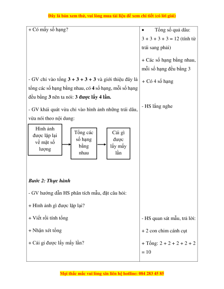 - GV khái quát vừa chỉ vào hình ảnh những trái dâu, vừa nói theo nội dung: Hình ảnh đượ Tổng các Cái gì c lặp lại số hạng được về mặt số lượ bằng lấy mấy ng nhau lần