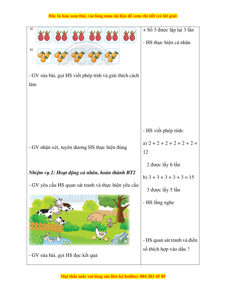 Mục tiêu: HS làm bài tập, luyện tập tính tổng của các số hạng bàng nhau Cách tiến hành: