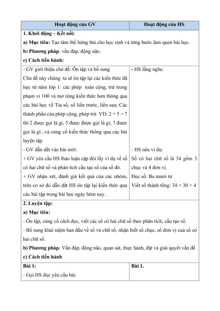 - Ôn tập, củng cố cách đọc, viết các số có hai chữ số theo phân tích, cấu tạo số.