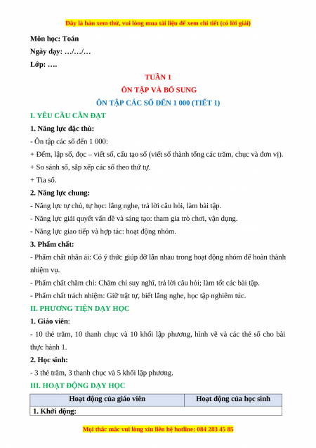 ÔN TẬP CÁC SỐ ĐẾN 1 000 (TIẾT 1)