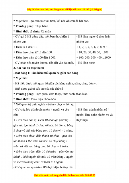 - HS hiểu được mối quan hệ giữa các hàng nghìn, trăm, chục, đơn vị.
