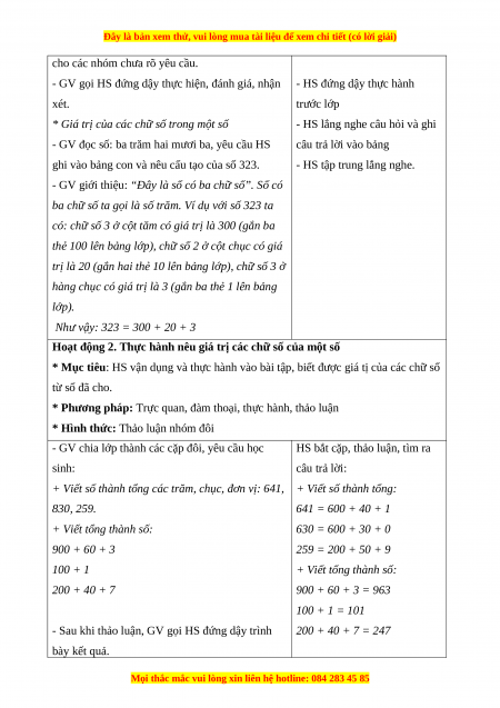 + Đếm, lập số, đọc – viết số, cấu tạo số (viết số thành tổng các trăm, chục và đơn vị).