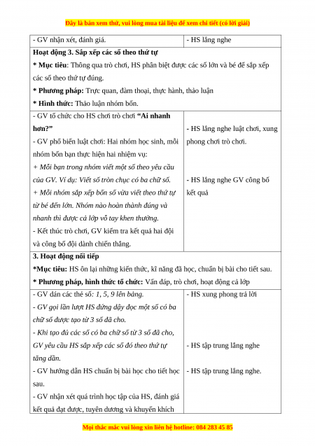 + So sánh số, sắp xếp các số theo thứ tự. + Tia số. 2. Năng lực chung: