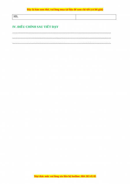 IV. ĐIỀU CHỈNH SAU TIẾT DẠY