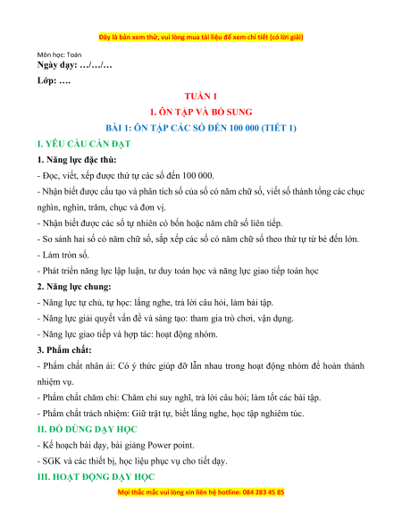 BÀI 1: ÔN TẬP CÁC SỐ ĐẾN 100 000 (TIẾT 1)