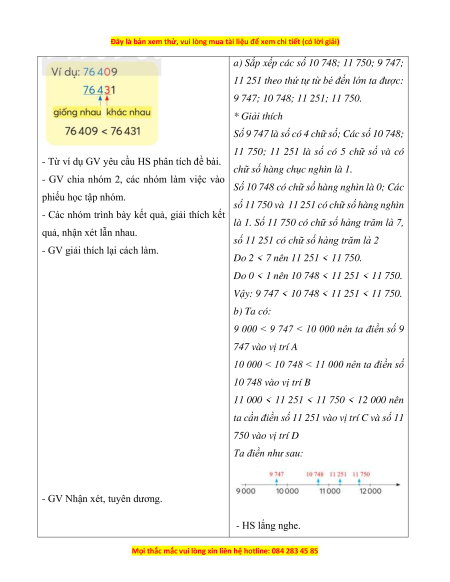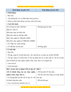 + Ôn tập, củng cố về kiến thức đọc, viết, xếp thứ tự, so sánh các số đến 100 000.
