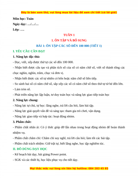 BÀI 1: ÔN TẬP CÁC SỐ ĐẾN 100 000 (TIẾT 1)