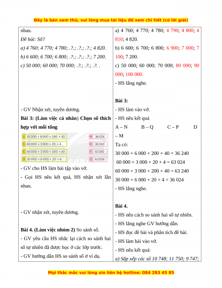 + Ôn tập, củng cố về kiến thức đọc, viết, xếp thứ tự, so sánh các số đến 100 000.