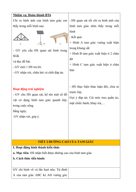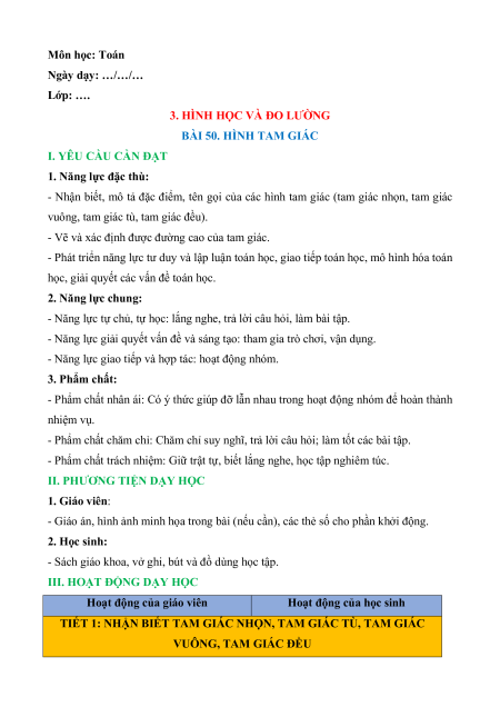 BÀI 50. HÌNH TAM GIÁC I. YÊU CẦU CẦN ĐẠT 1. Năng lực đặc thù: