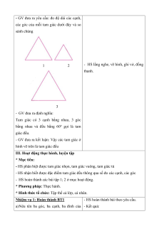 - HS gọi tên các đỉnh, các cạnh, các góc của tam giác: