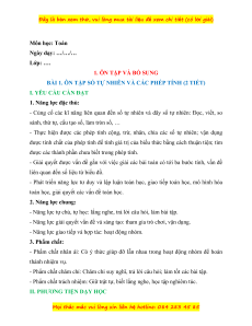 BÀI 1. ÔN TẬP SỐ TỰ NHIÊN VÀ CÁC PHÉP TÍNH (2 TIẾT) I. YÊU CẦU CẦN ĐẠT 1. Năng lực đặc thù: