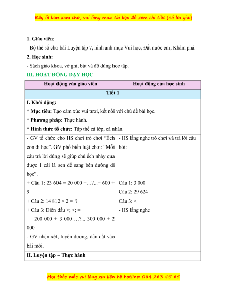 - Bộ thẻ số cho bài Luyện tập 7, hình ảnh mục Vui học, Đất nước em, Khám phá. 2. Học sinh: