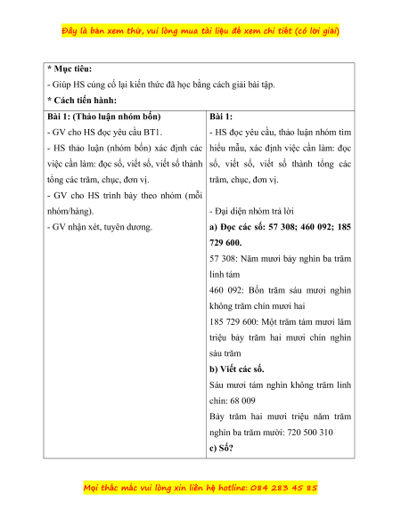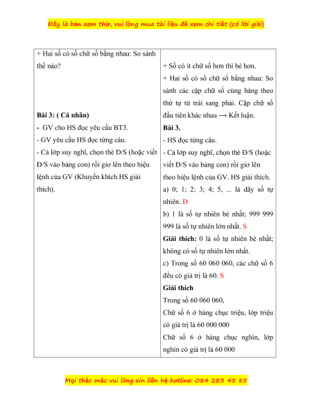 - Củng cố các kĩ năng liên quan đến số tự nhiên và dãy số tự nhiên: Đọc, viết, so
