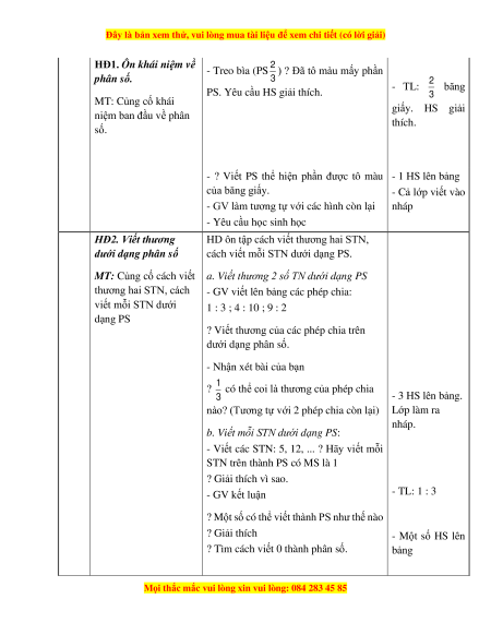 HD ôn tập khái niệm ban đầu về phân số