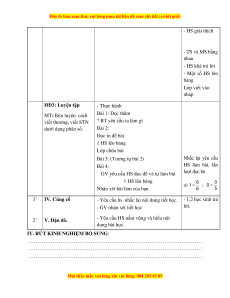 - Yêu cầu hs nhắc lại nội dung tiết học. - 1,2 học sinh trả lời. - GV nhận xét tiết học 2’ V. Dặn dò.