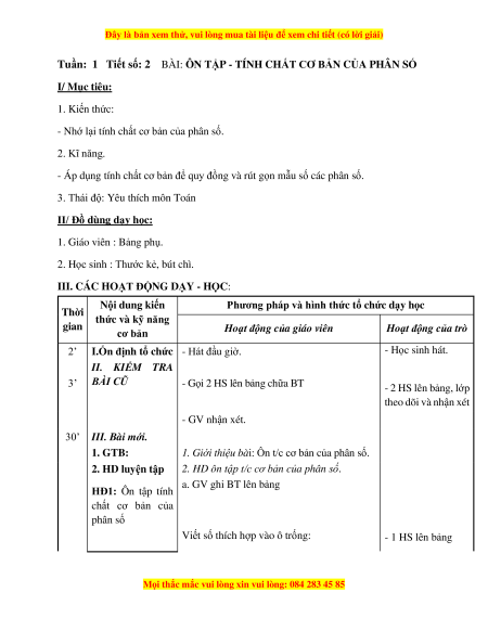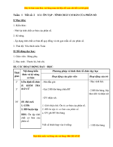 Tuần: 1 Tiết số: 2 BÀI: ÔN TẬP - TÍNH CHẤT CƠ BẢN CỦA PHÂN SỐ I/ Mục tiêu: 1. Kiến thức: