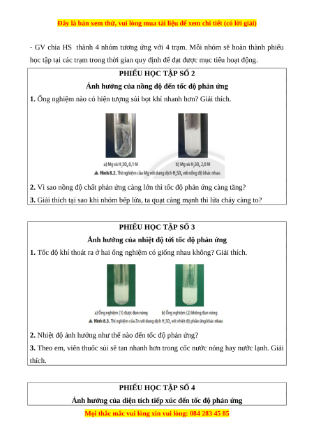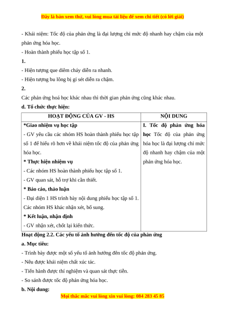 Hoạt động 2.2. Các yếu tố ảnh hưởng đến tốc độ của phản ứng a. Mục tiêu: