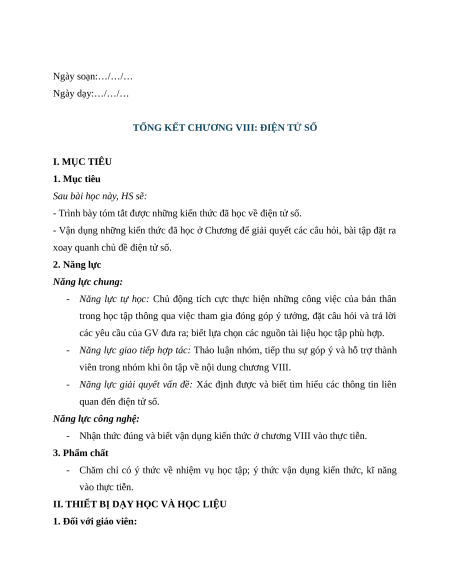 xoay quanh chủ đề điện tử số. 2. Năng lực