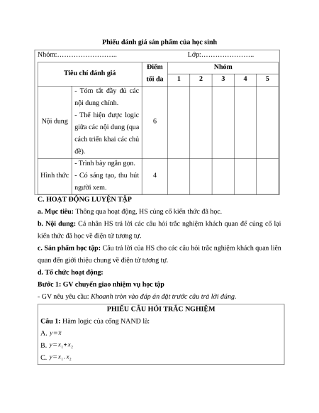 bản về điện tử số. Để ôn tập và củng cố kiến thức đã học, chúng ta hãy cùng vào bài
