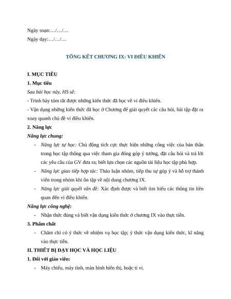 xoay quanh chủ đề vi điều khiển. 2. Năng lực