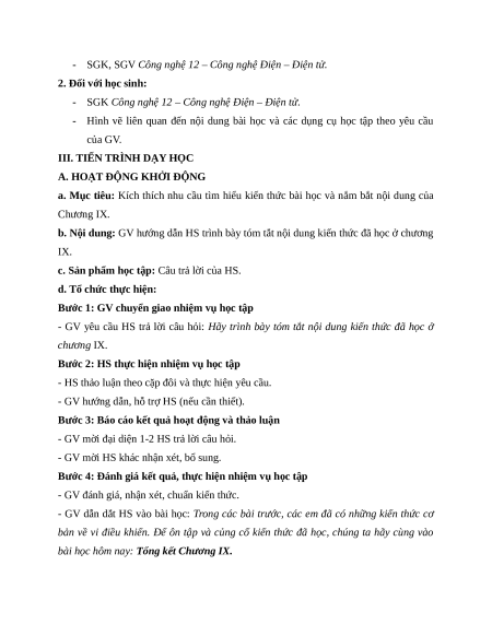 Bộ giáo án Công nghệ Điện - Điện tử 12 Kết nối tri thức đã cập nhật đủ Cả năm.