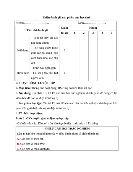 - Năng lực giao tiếp hợp tác: Thảo luận nhóm, tiếp thu sự góp ý và hỗ trợ thành