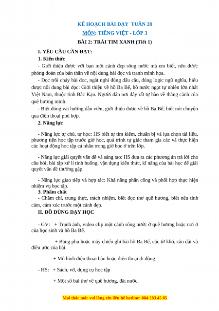 KẾ HOẠCH BÀI DẠY TUẦN 28