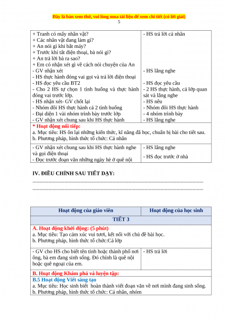 - HS thực hành đóng vai gọi và trả lời điện thoại